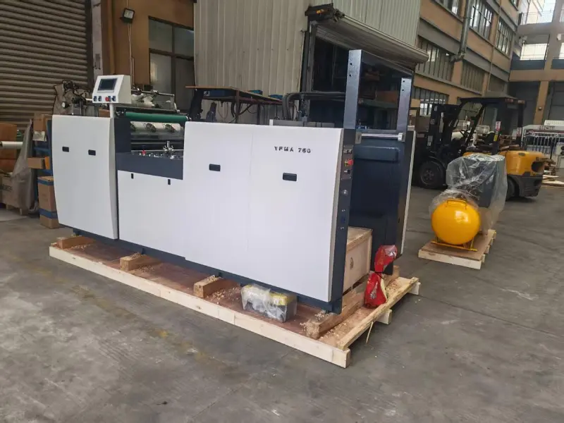 เรากำลังบรรจุ YFMA-760เครื่องเคลือบบัตรเคลือบล่วงหน้าอัตโนมัติ,สุดท้ายก็จะบรรจุในลังไม้